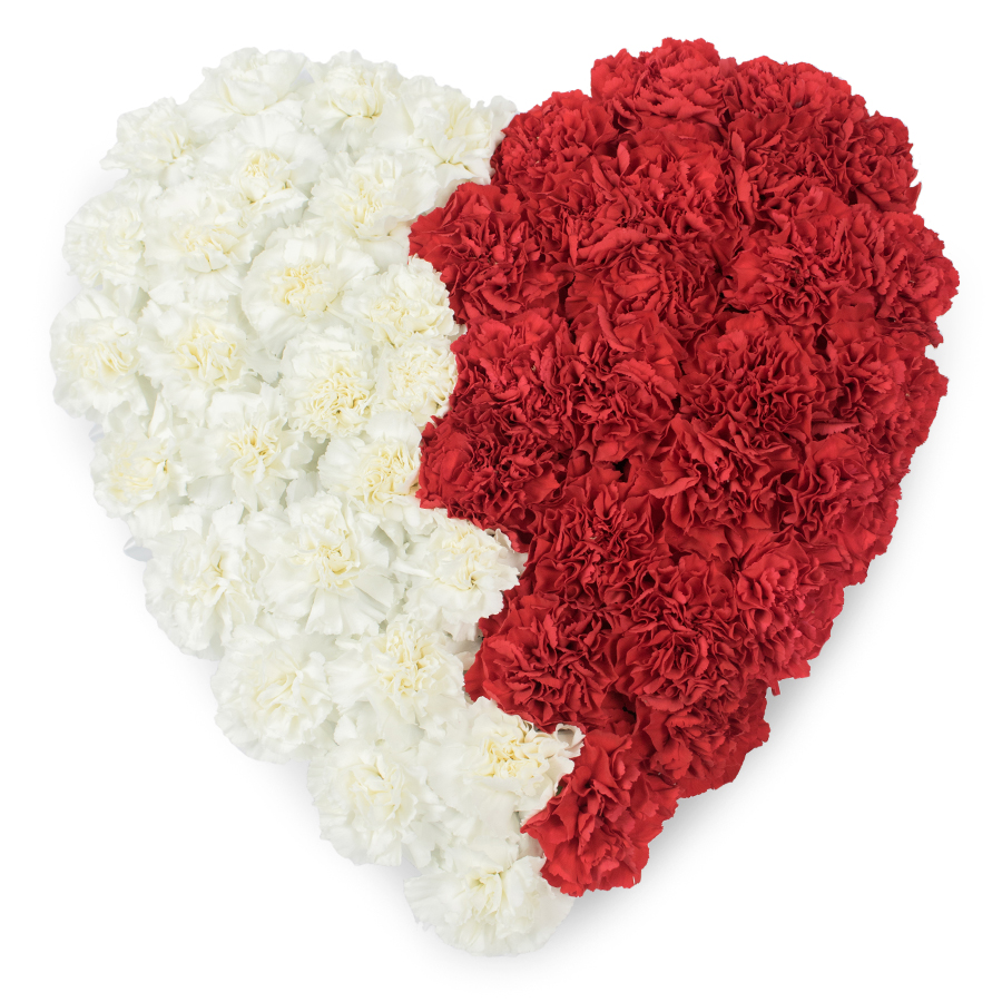 Celebrate special moments with our heart-shaped carnation bouquet, expertly designed by Handy Flowers. Featuring a harmonious blend of red and white carnations, this arrangement embodies both passion and purity.